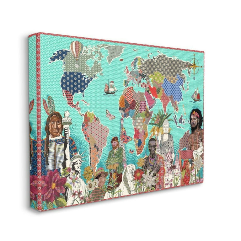 Stupell Industries Geometric Pattern World Map Diverse Cultures