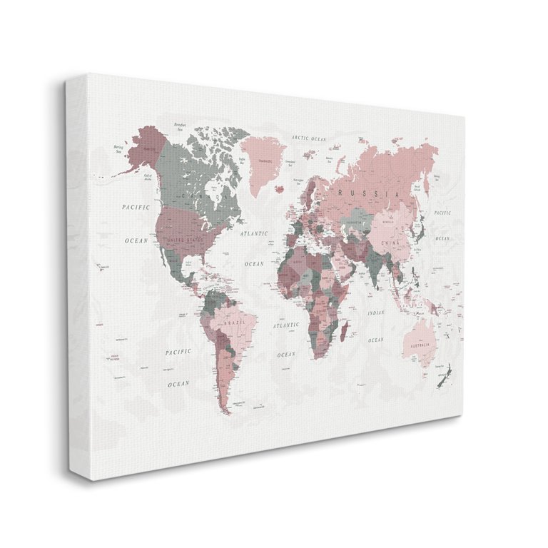 Stupell Industries World Map Patterned Waters Monochromatic Pink