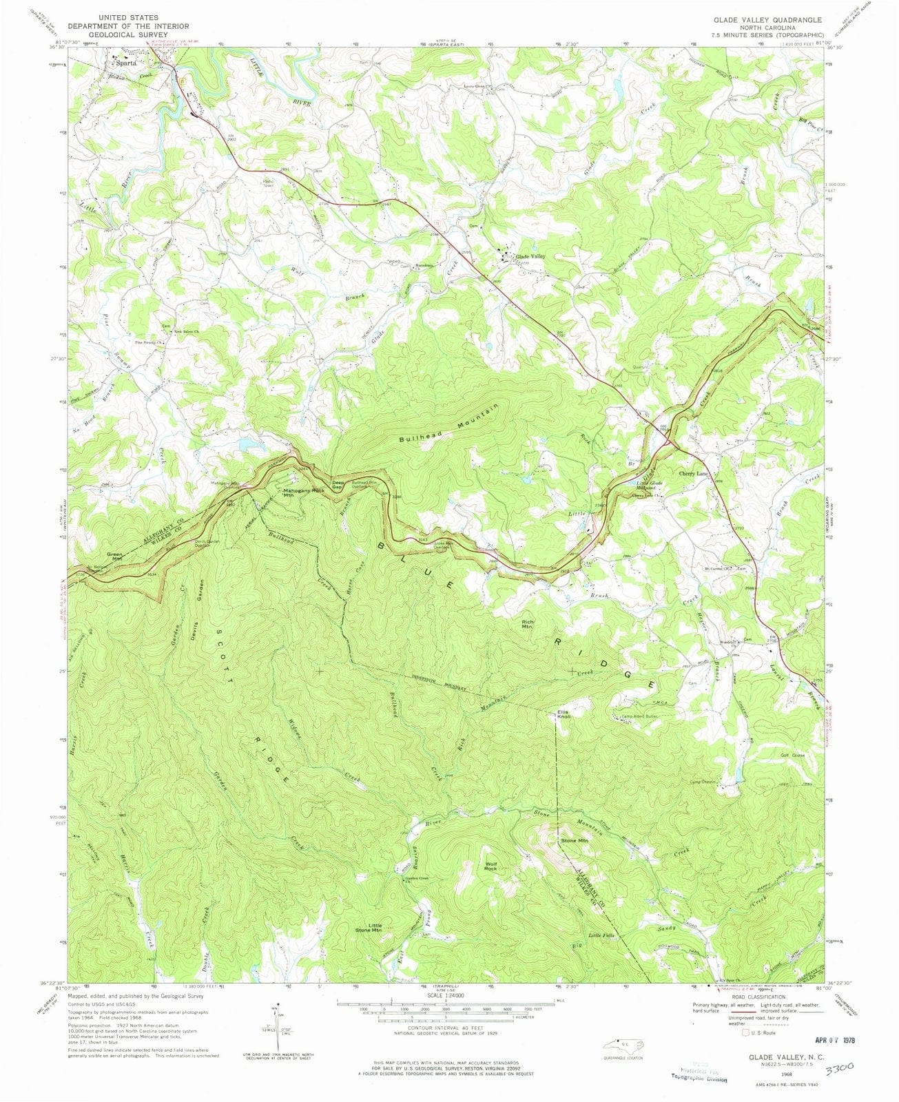 Classic USGS Glade Valley North Carolina 7.5’x7.5′ Topo Map