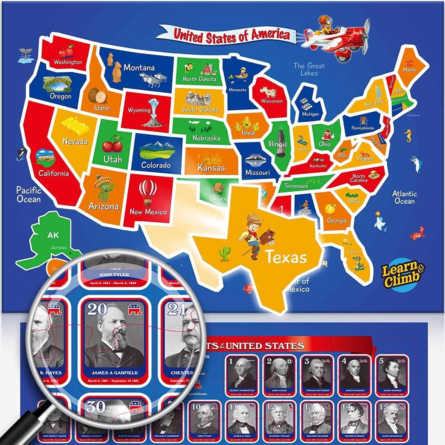 Magnetic USA Map Puzzle & President Puzzle for Kids – Learn & Climb