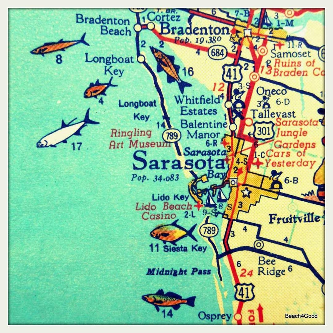 Meaningful Gifts for Him, Sarasota Siesta Key Florida Map Print